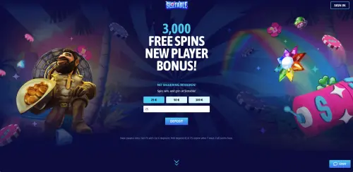 Tervetuliaistarjous on kerrassaan erinomainen. Harvemmin on jaossa jopa 3000 ilmaiskierrosta ensitalletusten yhteydessä. Parasta ilmaiskierroksilla on vielä se, että kierrätysvaatimuksia ei ole. Pelaaja saa siis pitää kaikki voitot itsellään.